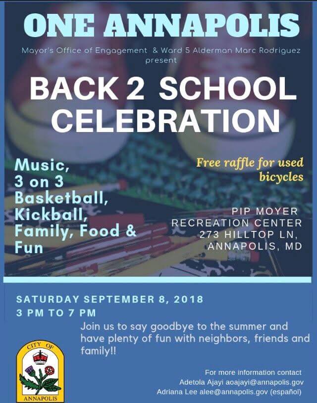 City to host One Annapolis Back-2-School Celebration at Truxtun Park on Sat., Sept. 8 Annapolis, MD (08-30-18) – On Saturday, September 8, 2018, from 3-7 p.m., Annapolis Mayor Gavin Buckley, […]
