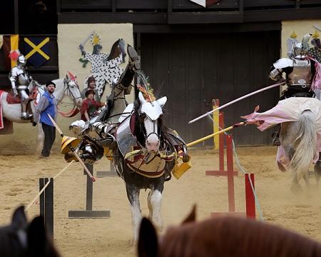 More than 200 professional performers will appear on ten stages, with authentic combat armored jousting on magnificent steeds and streets filled with village characters. Join His Most Royal Highness King Henry VIII in the forests and glades with over 140 artisans exhibiting crafts in their own renaissance shops, five taverns featuring cool libations, 42 food and beverage emporiums providing a vast array of succulent and sweet treats to sate even the most hearty of appetites.