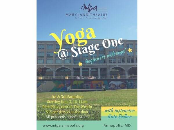Cost is $15 per person at the door. Participants must bring their own mats. In the event of rain, an alternate indoor location at Park Place may be used. All proceeds benefit the Maryland Theatre for the Performing Arts.