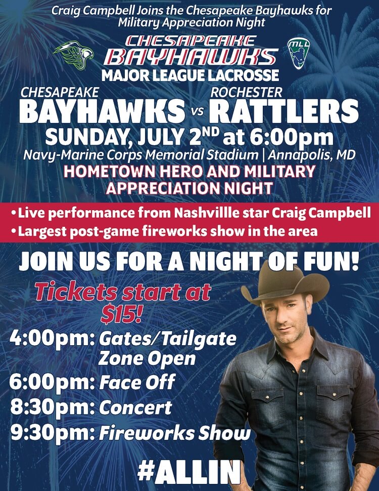Celebrate the 4th a little early at the Saturday Bayhawks vs. Rochester Rattlers game in conjunction with Hometown Hero and Military Appreciation Night. The event will feature an on-field concert with country star Craig Campbell presented by WBOC radio, and will be capped off by the area's largest post-game fireworks spectacle. Tickets start at $15. […]